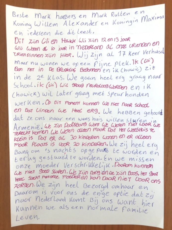 Dit Is De Brief Van Lili En Howick Aan Harbers En Rutte De Koning En Koningin Binnenland Ed Nl